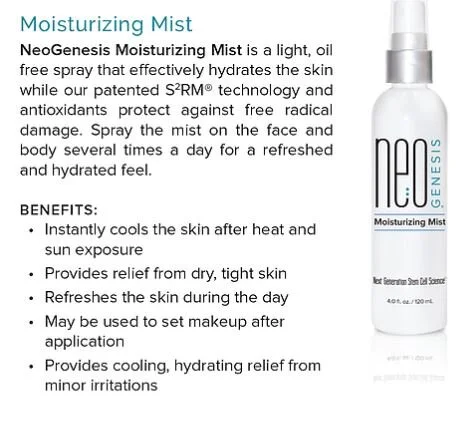 NEOGENESIS MOISTURIZING MIST: If you are using the NeoGenesis Glide Gel (one of the best on the market), then pair it with the NeoGenesis mist. This will give you a very nice treatment and is excellent for your skin.