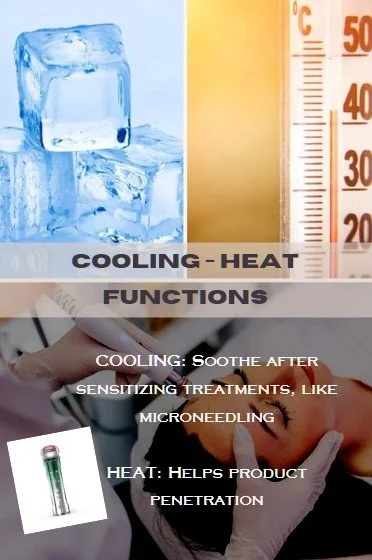 COOL - an ideal function to use after any sensitizing treatments, like laser, microneedling or just to help reduce puffiness (use with the biomechanical vibration function for instant toning!)